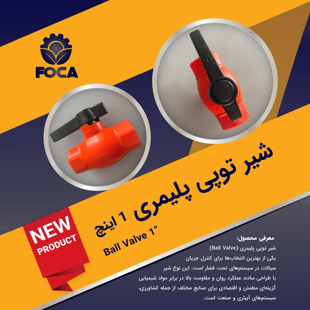 شرکت فوکا تجارت دامون با هدف ارائه راهکارهای هوشمند آبیاری برای رویارویی با چالش خشکسالی، محصولات باکیفیت و متنوعی را تولید میکند که به کشورهای مختلفی از خاورمیانه، اوراسیا و آفریقا نیز صادر شدهاند. یکی از محصولات برجسته این شرکت، شیر توپی پلیمری یا بال ولو سایز ۱ اینچ است که با بهرهگیری از دانش فنی روز و مواد اولیه مرغوب تولید میشود. مشخصات فنی این محصول عبارتند از: