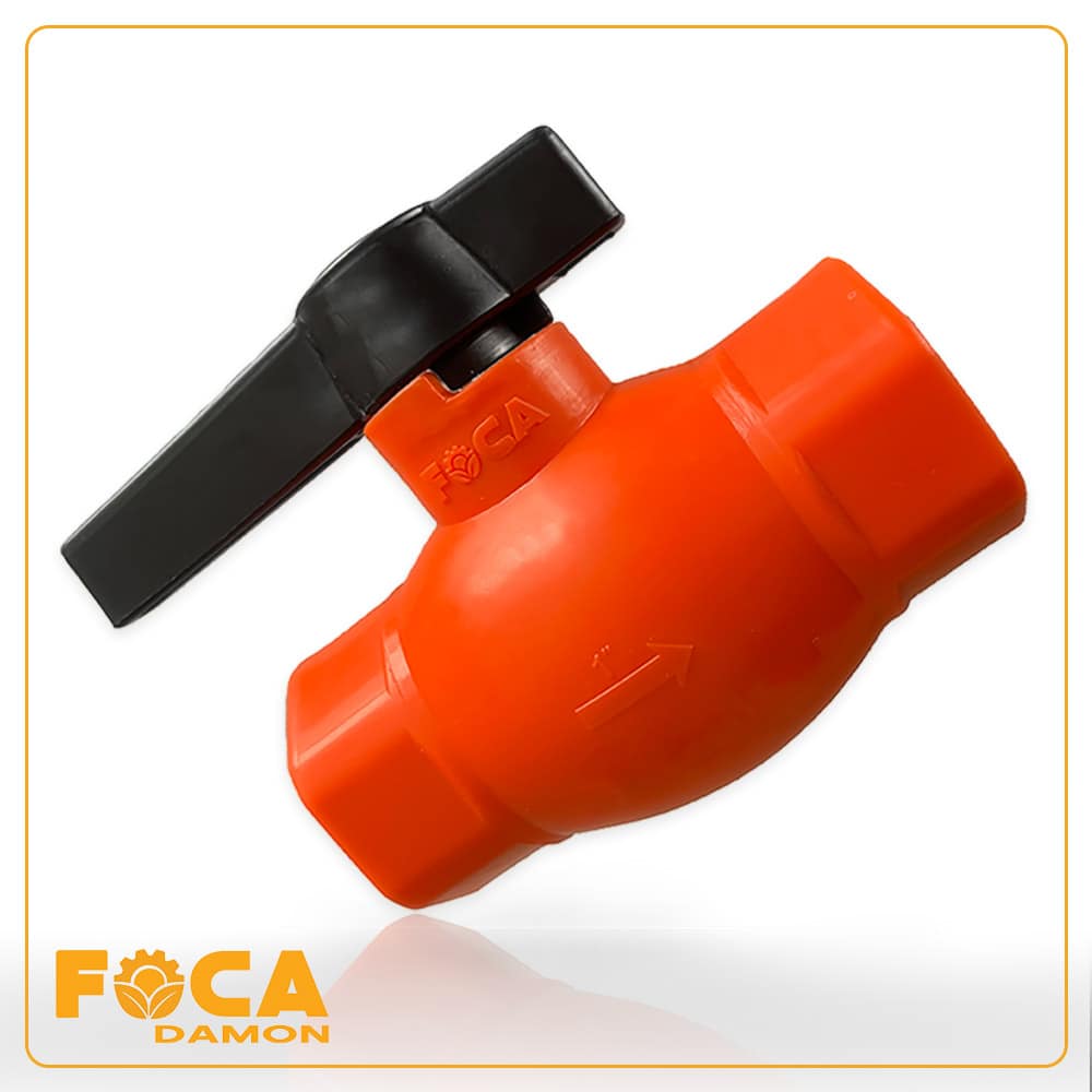 شیر توپی پلیمری یا بال ولو PP سایز ۱ اینچ شرکت فوکا دامون از ۳ قسمت بدنه، دسته و توپی تشکیل شده است و از سایز ½ اینچ تا ۴ اینچی ساخته و به بازار عرضه میگردد.